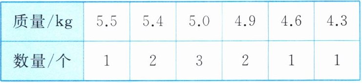 |质量/kg|5.5|5.4|5.0|4.9|4.6|4.3|