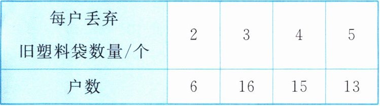 4. 6月5日是世界环境日。某校八年级学生小宇这一天在学校发布调查问卷,收集到50名学生家庭每天丢弃旧塑料袋数量的数据,如下表: