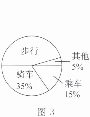 10. 某学校对学生上学方式进行抽样调查,根据调查结果绘制了一个不完整的扇形统计图(如图$3$).已知该学校共有$4\ 000$名学生,被调查的学生中乘车的有$18$名,则下列四种说法中,正确的是( ).