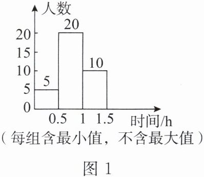 8. 为了落实“双减”政策,切实减轻学生负担,严格控制作业时间,某 校 政 教 处 拟 对 全 校$560$名学生每天做作业所用时间进行调查.调查人员随机抽取了部分学生进行问卷调查,并把结果制成图$1$所示的统计图.根据统计图可以估计这所学校学生在“双减”政策落实后,每天做作业时间不少于$1\ h$的学生有( ).