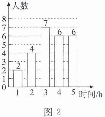9. 某学校为了了解七年级学生周末体育锻炼时间的情况,随机调查了该校$25$名七年级学生,得到了上周周末体育锻炼时间的一组样本数据,其统计图如图$2$,那么估计该学校七年级学生周末体育锻炼的平均时间是( ).