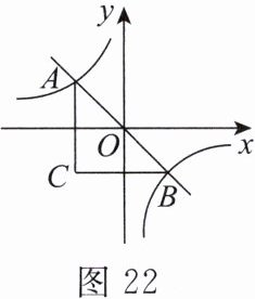 4. 如图 22,反比例函数 $ y = -\frac{4}{x} $ 的图象与直线 $ y = ax $($ a < 0 $)的交点为 $ A $,$ B $,过点 $ A $ 作 $ AC // y $ 轴,过点 $ B $ 作 $ BC // x $ 轴,$ AC $,$ BC $ 相交于点 $ C $,则 $ \triangle ABC $ 的面积为( )。