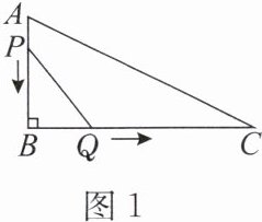 例2 如图1,在$\triangle ABC$中,$\angle B = 90^{\circ}$,$AB = 12$ cm,$BC = 24$ cm,动点$P从点A出发沿边AB向点B$以2 cm/s的速度移动(不与点$B$重合),同时动点$Q从点B出发沿边BC向点C$以4 cm/s的速度移动(不与点$C$重合).设运动的时间为$t$ s,四边形$APQC的面积为y$ $cm^{2}$.