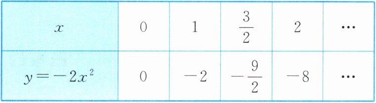 (1) 因为 $ y = -2x^2 $ 的图象关于 $ y $ 轴对称,因此列表时,自变量 $ x $ 可以从原点的横坐标 0 开始取值。