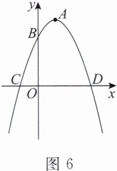 9. 如图 6,已知抛物线的顶点为 $ A(1, 4) $,与 $ y $ 轴交于点 $ B(0, 3) $,与 $ x $ 轴交于 $ C $,$ D $ 两点,$ P $ 是 $ x $ 轴上的一个动点。