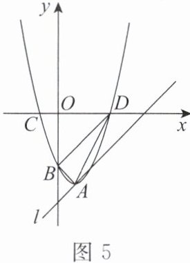 7. 如图 5,抛物线 $ y = x^2 - 2x + c $ 的顶点 $ A $ 在直线 $ l: y = x - a $ 上,点 $ D(3, 0) $ 为抛物线上一点。