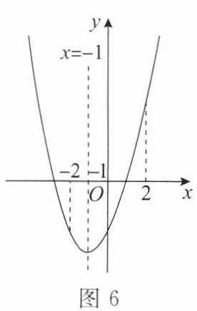 小军从“形”的角度考虑:画出函数图象,如图 6 所示,通过观察图象,容易发现当 $ x = -1 $ 时,$ y $ 取得最小值;当 $ x = 2 $ 时,$ y $ 取得最大值。将 $ x = -1 $,$ x = 2 $ 分别代入二次函数表达式,可得 $ y_{最小} = -4 $,$ y_{最大} = 5 $。所以 $ y $ 的取值范围是 $ -4 \leq y \leq 5 $。