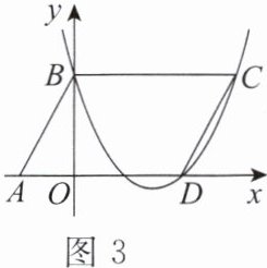 $y = x^{2}-3x+2$ 提示:设抛物线所表示的函数表达式为$y = ax^{2}+bx+c$.由$BC// AD,AD = BC = 3$,$A(-1,0),B(0,2)$,得$C(3,2),D(2,0)$.将$B(0,2)$,$C(3,2),D(2,0)$代入$y = ax^{2}+bx+c$,得函数表达式为$y = x^{2}-3x+2$.