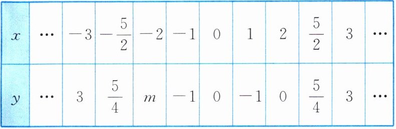 | $ y $ | …$ $ | $ 3 $ | $ \frac{5}{4} $ | $ m $ | $ -1 $ | $ 0 $ | $ -1 $ | $ 0 $ | $ \frac{5}{4} $ | $ 3 $ | …$ $ |