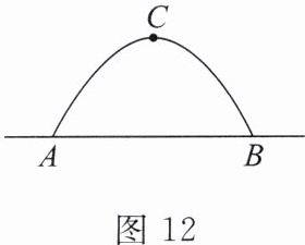 6. 如图12,公园里有一座拱形桥,桥拱呈抛物线形,水面宽度$AB = 10m$,桥拱最高点$C到水面的距离为6m$。