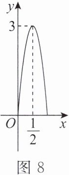2. 某中心广场有呈抛物线形的音乐喷泉,其中一个喷水管喷水的最大高度为$3m$,此时距喷水管的水平距离为$\frac{1}{2}m$。如图8,抛物线所对应的函数的表达式是( )。