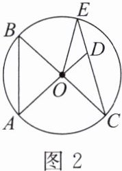 3. 如图2,在$\odot O$中,点$B$,$O$,$C和点A$,$O$,$D$分别在同一条直线上,则图中______是弦,______是直径,______是以$A$为端点的劣弧,______是以$A$为端点的优弧。(把满足要求的答案全部填上)