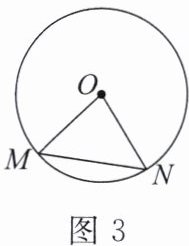 4. 如图3,$MN为\odot O$的弦,$\angle N = 50^{\circ}$,则$\angle M$的度数为______,$\angle MON$的度数为______。