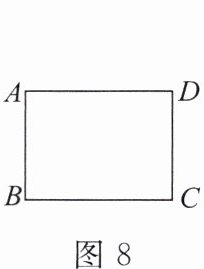 4. 如图8,在矩形$ABCD$中,$AB = 6$,$AD = 8$,以点$D$为圆心、$8为半径作\odot D$,则下列各点在$\odot D$外的是( )。