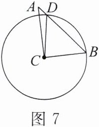 4. 如图7,在$\triangle ABC$中,$\angle ACB = 90^{\circ}$,$\angle A = 40^{\circ}$,以$C$为圆心,$CB为半径的圆交AB于点D$,连接$CD$。求$\angle ACD$的度数。