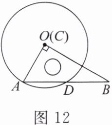8. 如图12,将含$30^{\circ}角的直角三角尺ABC的直角顶点C与圆心O$重合,其斜边$AB交\odot O于点D$,点$A$在圆上。