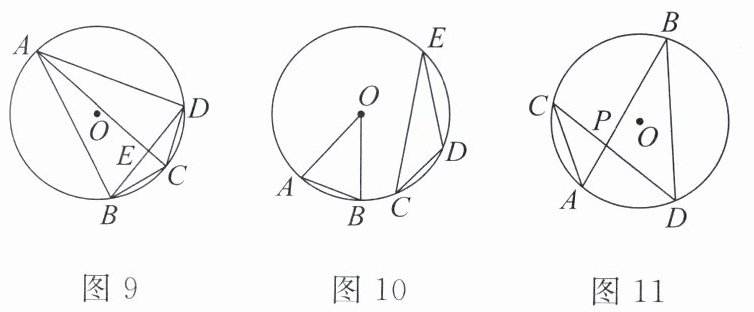 1. 如图9,点$A$,$B$,$C$,$D都在\odot O$上,$AC$,$BD相交于点E$,则下列各角与$\angle ABD$的度数相等的是( ).