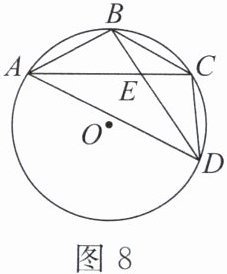 4. 如图8,已知$A$,$B$,$C$,$D是\odot O$上的四个点,$AB = BC$,$BD交AC于点E$,连接$CD$,$AD$. 求证:$DB平分\angle ADC$.