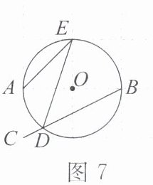3. 如图7,在由边长为1的小正方形构成的网格中,半径为1的$\odot O的圆心O$在格点上,则$\angle AED$的正切值为______.