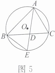 例2 如图5,点$A$,$B$,$C$,$E在\odot O$上,$E是\overset{\frown}{BC}$的中点,$AE$,$BC相交于点D$.