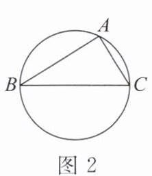 3. 如图 2,点$A$,$B$,$C$在半径为 3 的圆上,且$\angle A = 90^{\circ}$,则$BC$的长为____。