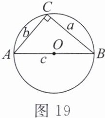 9. 【阅读理解】如图 19,$Rt\triangle ABC$中,$a$,$b$,$c分别是\angle A$,$\angle B$,$\angle C$的对边,$\angle C = 90^{\circ}$,其外接圆半径为 $R$。根据锐角三角函数的定义,得$\sin A = \frac{a}{c}$,$\sin B = \frac{b}{c}$。所以$\frac{a}{\sin A} = \frac{b}{\sin B} = c = 2R$,即$\frac{a}{\sin A} = \frac{b}{\sin B} = \frac{c}{\sin C} = 2R$(规定$\sin 90^{\circ} = 1$)。