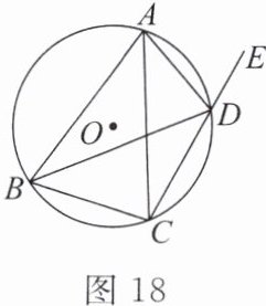 8. (2022 山东威海中考)如图 18,已知四边形$ABCD是\odot O$的内接四边形,连接 $AC$,$BD$,延长 $CD$至点 $E$。
