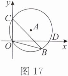 7. 如图 17,在平面直角坐标系中,$O$为原点,直径为 10 的$\odot A$与 $y$轴相交于点 $C$和点 $O$,$B$是 $y$轴右侧优弧 $OC$上的一点,且$\angle OBC = 30^{\circ}$,则点 $C$的坐标为____。