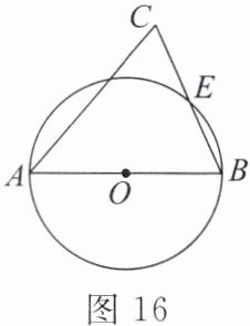 6. 如图 16,以$\triangle ABC$的 $AB边为直径作\odot O$,交 $BC$边于点 $E$,且 $E$为 $BC$的中点,$\angle CAB = 50^{\circ}$。求$\angle C$的度数。