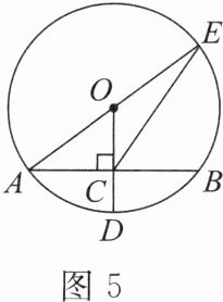 例 如图 5,⊙O 的半径 OD 垂直于弦 AB,垂足为点 C,连接 AO 并延长,交⊙O 于点 E,连接 EC,AB = 8,CD = 2. 求 EC 的长.