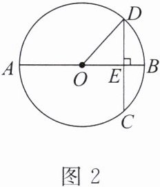 2. 如图 2,AB 是⊙O 的直径,弦 CD⊥AB 于点 E,AB = 20,CD = 16,则线段 OE 的长为( ).