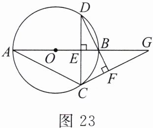 9. 如图 23,AB 是⊙O 的直径,弦 $CD\perp AB$ 于点 E,过点 C 作直线 DB 的垂线 CF,交 AB 的延长线于点 G,垂足为点 F,连接 AC.