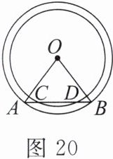 6. (教材第 60 页习题第 4 题变式) 如图 20,在以 O 为圆心的两个同心圆中,大圆的弦 AB 交小圆于 C,D 两点. 若 $CD = 10$,$AB = 18$,小圆半径为 13,则大圆半径 OA 的长为______.