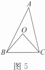 1. 如图 5,已知点 $ O $ 是 $ \triangle ABC $ 的外心,$ \angle A = 40^{\circ} $,连接 $ BO $,$ CO $,则 $ \angle BOC $ 的度数是( ).