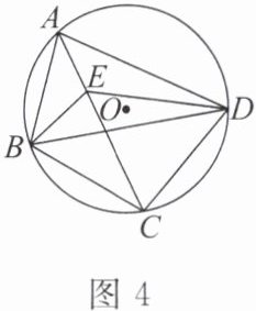 例 2 如图 4,在 $ \triangle ABD $ 中,$ AE $,$ BE $ 分别是 $ \angle BAD $,$ \angle ABD $ 的平分线,延长 $ AE $ 交 $ \triangle ABD $ 的外接圆于点 $ C $,连接 $ BC $,$ CD $,$ DE $.