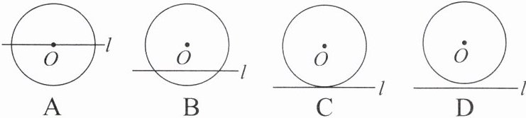 2. 下列各图中,直线 $l$ 与 $\odot O$ 的位置关系为相切的是( ).