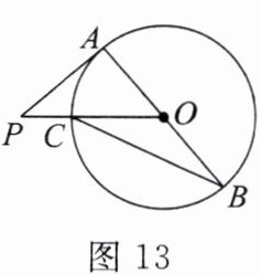 3. 如图 13,$ AB $ 是 $ \odot O $ 的直径,$ P $ 是 $ \odot O $ 外一点,$ PO $ 交 $ \odot O $ 于点 $ C $,连接 $ BC $,$ PA $,$ \angle P = 40^{\circ} $. 当 $ \angle B = $______$ ^{\circ} $ 时,$ PA $ 与 $ \odot O $ 相切.