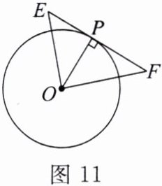 1. 如图 11,已知 $ \odot O $ 的半径为 5,过点 $ O $ 作 $ OP \perp EF $ 交直线 $ EF $ 于点 $ P $(点 $ E $,$ F $ 在点 $ P $ 的两侧),下列条件中,能判定直线 $ EF $ 与 $ \odot O $ 相切的是( ).