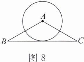 2. 如图 8,在 $ \triangle ABC $ 中,$ AB = AC $,$ \angle B = 30^{\circ} $,以点 $ A $ 为圆心,以 $ 3 cm $ 为半径作 $ \odot A $,则当 $ AB = $______$ cm $ 时,$ BC $ 与 $ \odot A $ 相切.