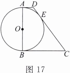 8. 如图17,AD//BC,AB⊥BC,以AB为直径的⊙O与DC相切于点E.已知AB= 8,BC - AD= 6.