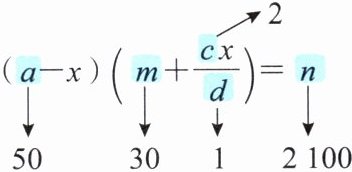 根据题意,得 (50-x)(30+2x)= 2100。