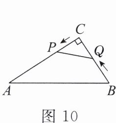 2. 如图 10,在 Rt△ABC 中,∠C = 90°,AC = 10 cm,BC = 7 cm。动点 P 在线段 AC 上,从点 C 出发沿 CA 方向运动;同时动点 Q 在线段 BC 上,从点 B 出发沿 BC 方向运动,点 P,Q 的运动速度均为 1 cm/s。则当运动 ______ s 时,它们相距 5 cm。
