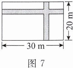 2. 如图 7,在宽为 20 m、长为 30 m 的矩形地面上修建两条同样宽的道路,余下部分作为耕地。若耕地面积需要$ 551 m^2,$则修建的道路宽应为 _________ m。