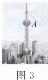 4. 东方明珠塔高 $468\ m$,上球体点 $A$ 是塔身的黄金分割点(如图 3),则点 $A$ 到塔顶部的距离约是______$m$。(结果精确到 $0.1\ m$,$\sqrt{5}\approx 2.236$)