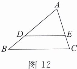 1. 如图 12,在 $ \triangle ABC $ 中,$ DE // BC $,$ AD = 6 $,$ DB = 3 $,$ AE = 4 $,则 $ EC $ 的长为( )。