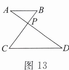 2. 如图 13,已知 $ \triangle PCD $,作 $ AB // CD $,$ AB $ 分别交 $ DP $,$ CP $ 的延长线于点 $ A $,$ B $,$ CP = 4 $,$ DP = 6 $,$ BP = 2 $,则 $ AD $ 的长为( )。
