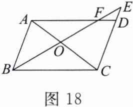 7. 如图 18,$ E $ 为 $ □ ABCD $ 的边 $ CD $ 的延长线上的一点,连接 $ BE $ 交 $ AC $ 于点 $ O $,交 $ AD $ 于点 $ F $。求证:$ OB^{2} = OF \cdot OE $。