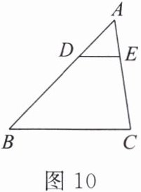 1. 如图 10,若 $ DE // BC $,$ AD = 5 $,$ BD = 10 $,$ DE = 4 $,则 $ BC $ 的长为( ).