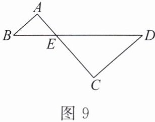 4. 如图 9,$ AB // CD $,$ AC $ 与 $ BD $ 相交于点 $ E $,$ AE = 1 $,$ CE = 2 $,$ DE = 3 $. 求 $ BD $ 的长.