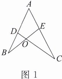 2. 如图 1,已知$∠B= ∠C$,则$△BOD\backsim$____,$△ABE\backsim$____,理由是____.